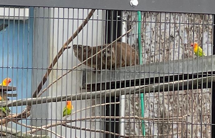 数ヶ月前に動物園に行った。カラフルなインコがいる檻があるな、と思って近づいてよく見ると種類が全然違う同居人達がいた。一見カピパラかなんかに見えるこの動物の名前はケープハイラックス。檻に3,4匹いた。 よく見てください